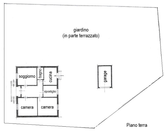 Località Crocino, in posizione tranquilla e silenziosa, villetta completamente indipendente con giardino circostante in parte terrazzato di circa 400 mq; la villetta si sviluppa interamente al piano terra rialzato ed è composta da ingresso, sala, cucina abitabile, 2 camere matrimoniali, bagno, ripostiglio con finestra. Già dotata di inferriate a tutti gli infissi, la casa non ha lavori strutturali ma solo lavori di rimodernamento interni. Garage in muratura con ingresso carrabile e posto auto in cortile interno. Libera. Ottima soluzione per chi cerca la totale indipendenza senza allontanarsi troppo dai servizi. Classe G. Ipe 225.