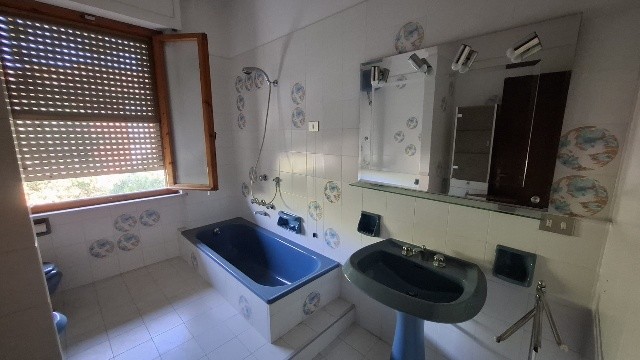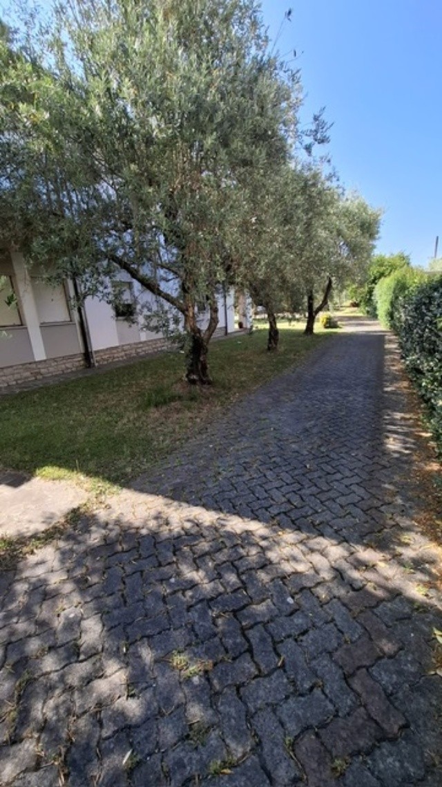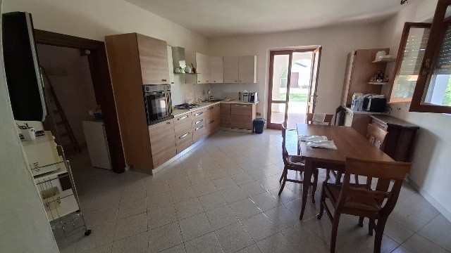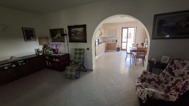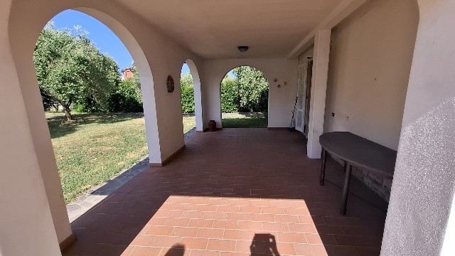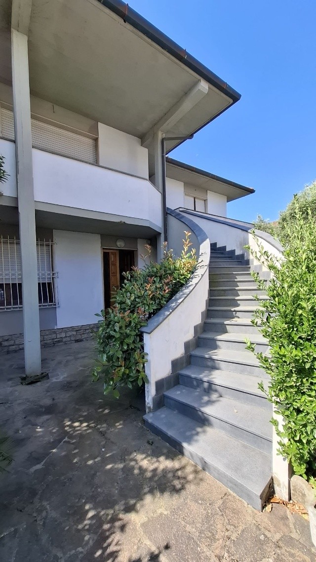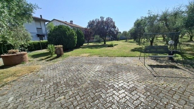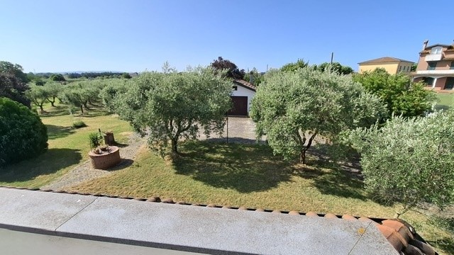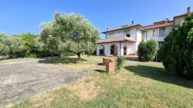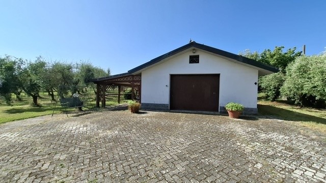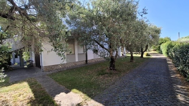 In ottima zona residenziale, villa bifamiliare d'angolo con giardino-terreno esclusivo su tre lati di mq 2500; la villa è già divisa in due grandi appartamenti indipendenti e precisamente al piano terra ingresso, sala-cucina, 2 bagni, due camere, garage-taverna comunicante con la sala, loggiato; al primo piano con accesso da scala indipendente ingresso, sala con balcone, cucina abitabile con balcone ed altro accesso con scala esterna, tre camere, due bagni ed ampia terrazza che affaccia sul verde di proprietà. Sul retro della villa ampio annesso agricolo di circa 40 mq con angolo cottura, tettoia e gazebo. Pozzo per irrigazione e 70 piante di olivo in produzione. Oggetto unico in zona ed ottimo per due famiglie che cercano l'indipendenza ed ampi spazi esterni. Classe G ipe 214,48 il Piano primo e Classe F Ipe 174,47 il piano terra.