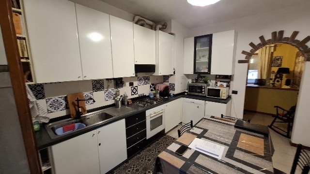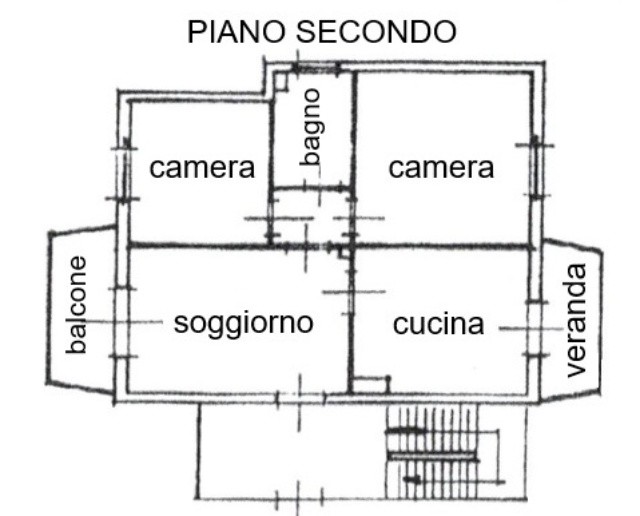 In paese, contesto tranquillo e riservato con parcheggio in cortile interno; appartamento al secondo ed ultimo piano composto da soggiorno con balcone, cucina abitabile con veranda, 2 camere, bagno, ampio sottotetto da sfruttare come studio o terza camera, garage al piano terra e posto auto in cortile condominiale. Classe G. Ipe 185.