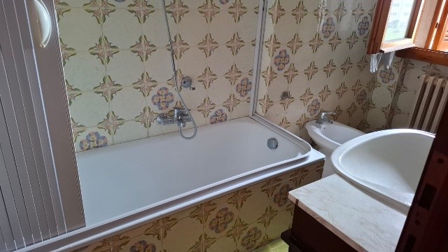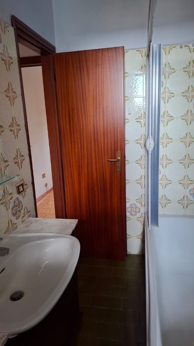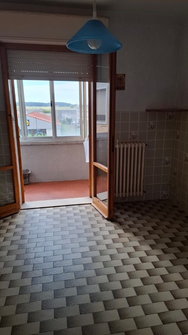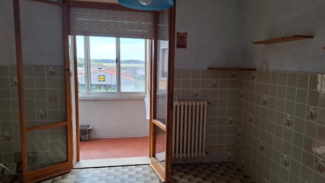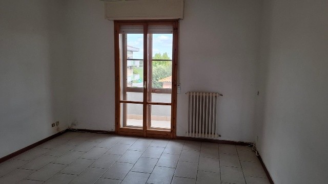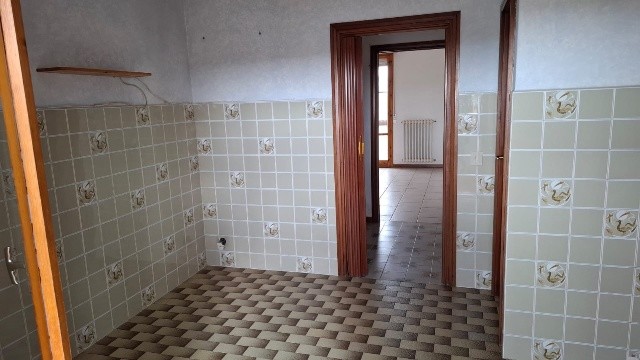 In paese vicino a tutti i servizi principali, appartamento al terzo piano molto luminoso, con doppio affaccio, composto da ingresso, sala con balcone, cucina abitabile con balcone verandato e ripostiglio-dispensa, ampia camera matrimoniale, bagno. Al piano terra garage, cortile interno con posto auto e giardino condominiale. Ampio parcheggio pubblico fronte casa. Classe G. Ipe 118,8.