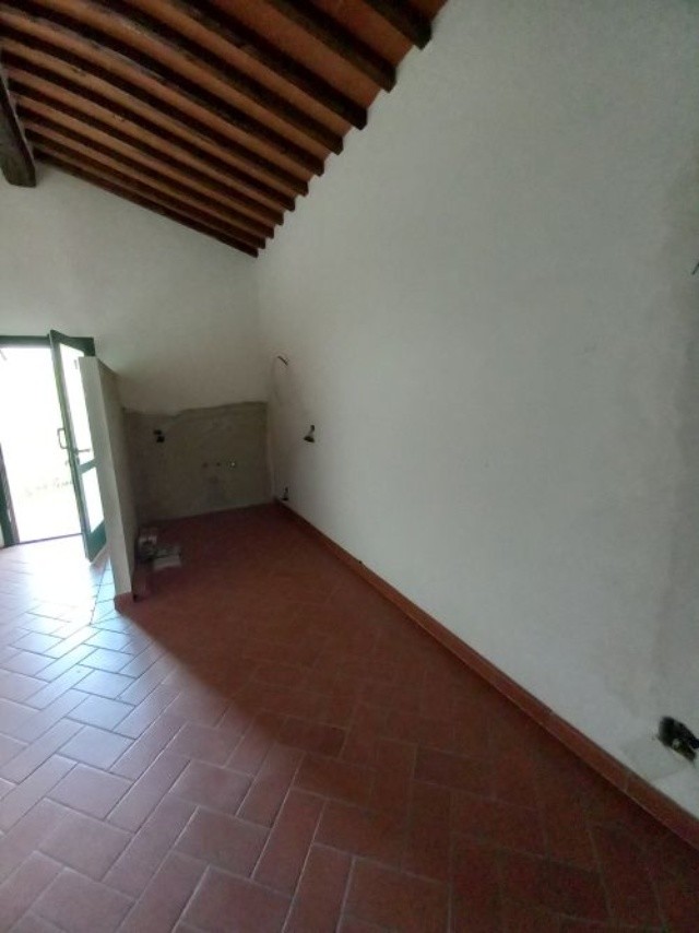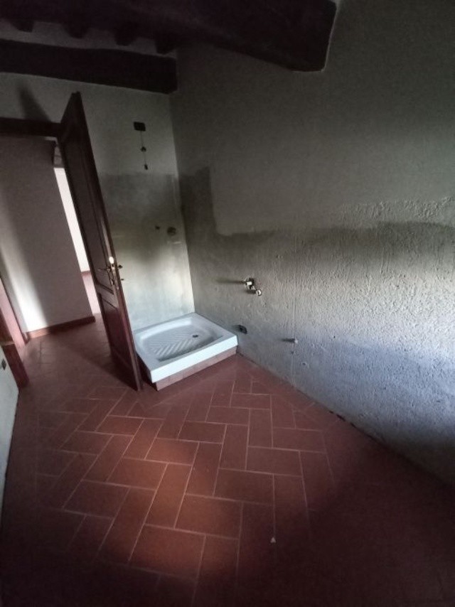 Nella parte alta, terratetto d'angolo con giardino-cortile esclusivo e garage, dislocato su due livelli, al piano terra ingresso, soggiorno, bagno, cucinotto con dispensa -ripostiglio e soggiorno-pranzo; al primo piano camera matrimoniale, due camerine singole e studio. Ripostiglio esterno con locale tecnico e caldaia. Classe G. Ipe 185.